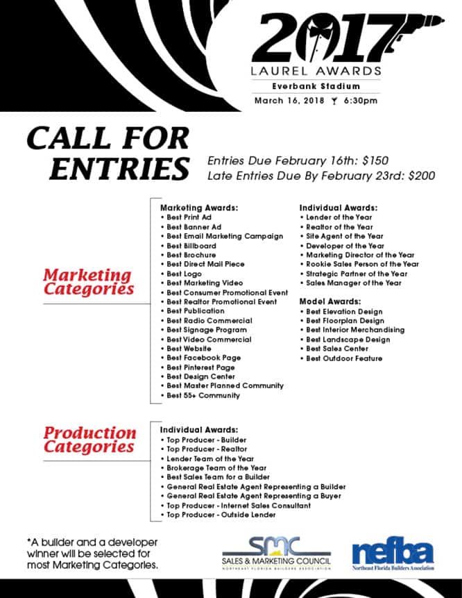 The annual Laurel Awards event celebrates the best and brightest real estate marketing professionals in Northeast Florida. Hosted by the Northeast Florida Builders Association (NEFBA), the event honors companies and individuals in real estate sales and marketing for their accomplishments over the past year.